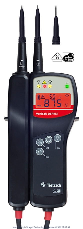 Duży, dwukolorowy, podświetlany wyświetlacz (czerwony / biały), zapewniający wyraźne ostrzeżenie o niebezpiecznym napięciu